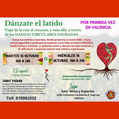 Taller: “DÁNZATE EL LATIDO: viaja de la raíz al corazón, y más allá", a través de las DANZAS CIRCULARES, una meditación en movimiento."